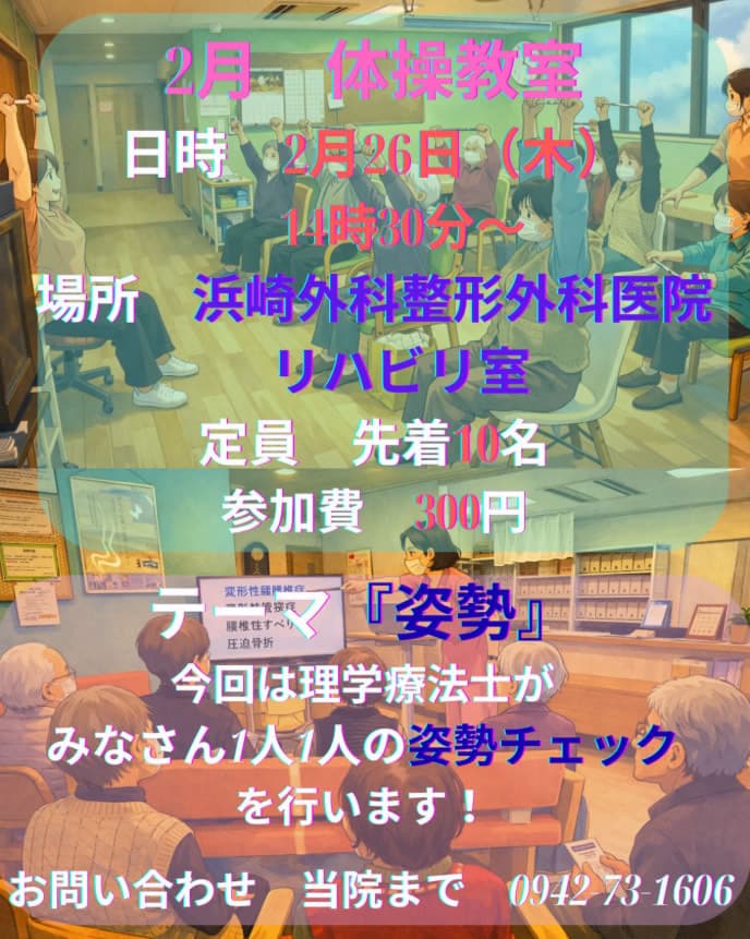 今回のテーマは『姿勢』!!当院の理学療法士があなたの姿勢のチェック後、姿勢を正すために1人1人アドバイスを行います。